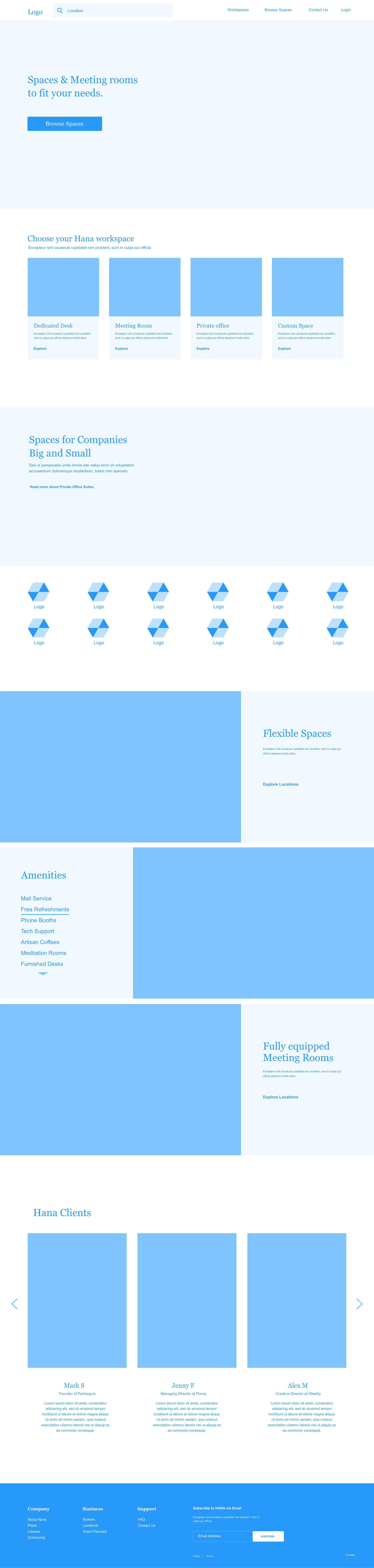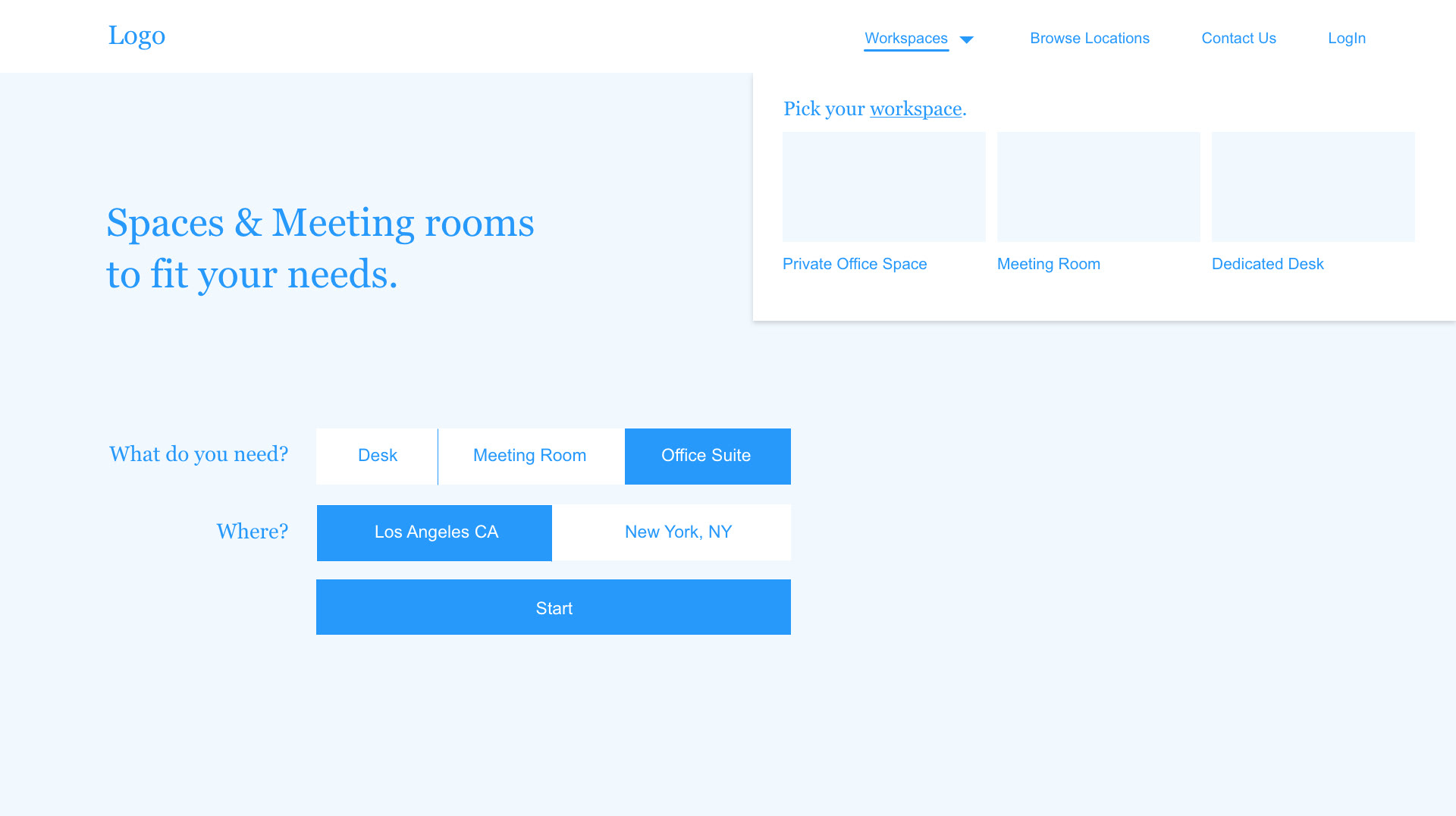 The challenge was to integrate multiple competing needs and goals, that were in and of itself, highly complex: offering customizable team suites to large companies, bookable conference room, and shared coworking spaces of all types from desks to private rooms. In addition, the featured coworking spaces were not built and no polished photography existed.